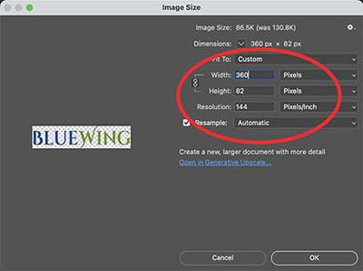 Using the image editor of your choice (Photoshop, Canva, Gimp, etc.) open the logo and resize to 360px wide at 144ppi.