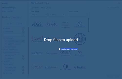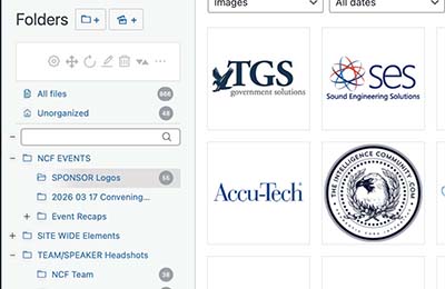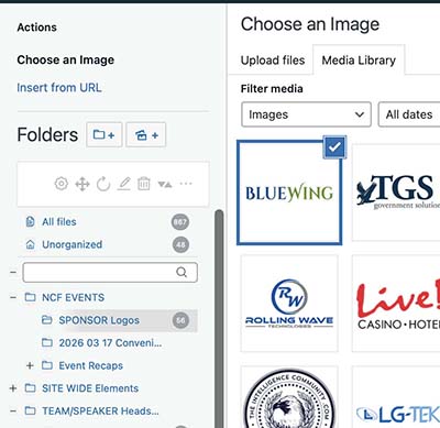 Open the Media Library in the WordPress dashboard. Navigate to and select the folder called SPONSOR Logos.