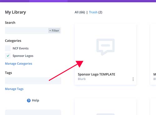 Select NCF Events and search for TEMPLATE. Select the module called Sponsor Logo TEMPLATE.